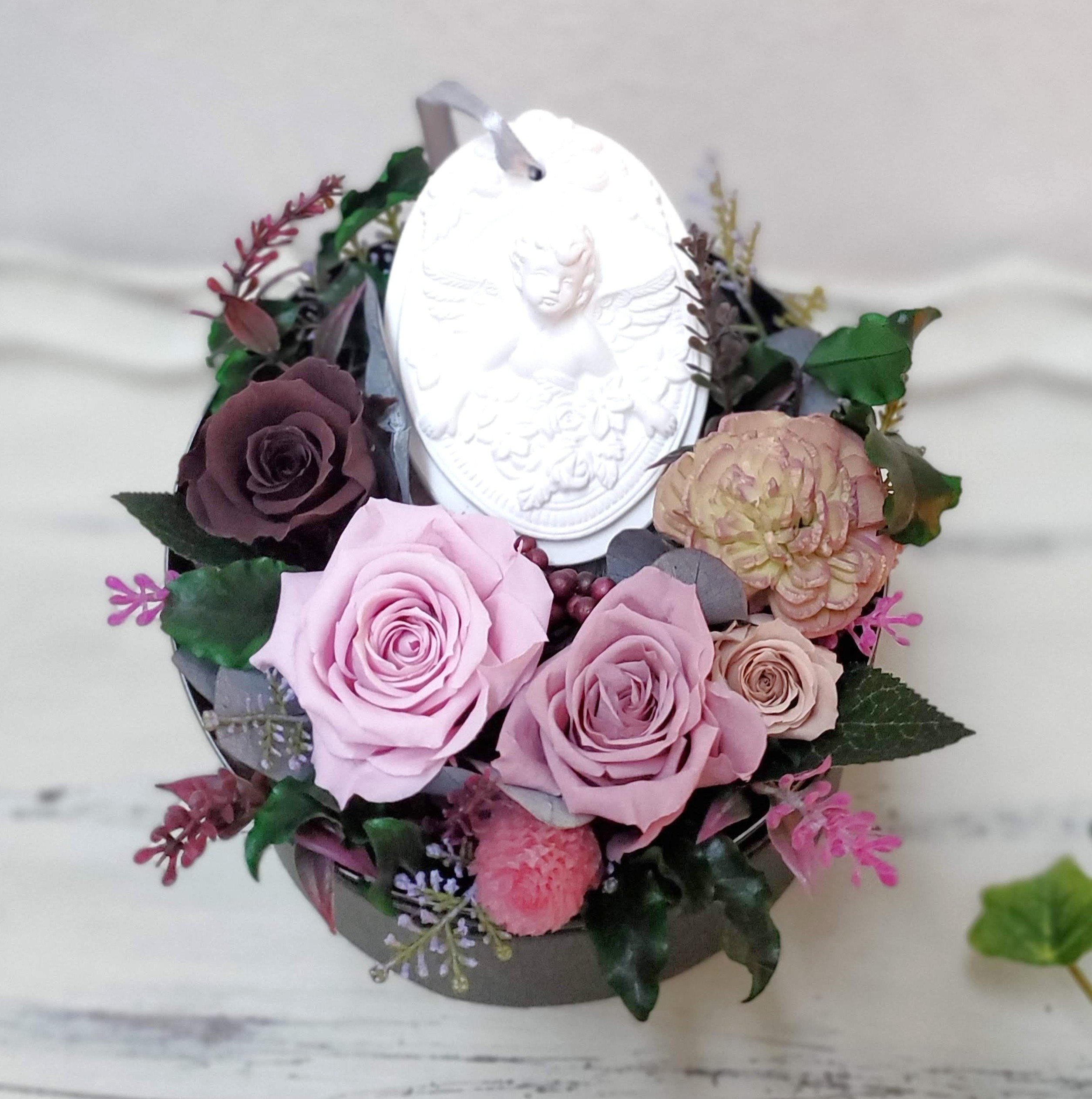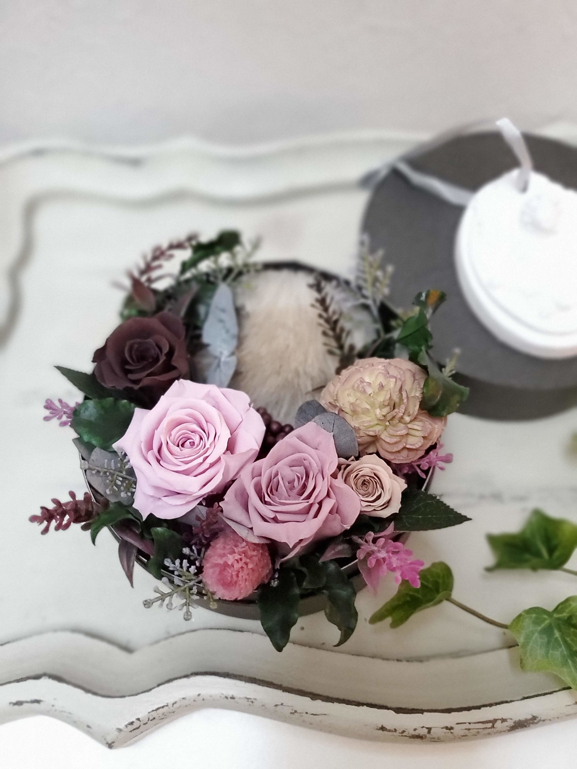 プリザーブドフラワーやアーティフィシャルフラワーとイギリス産の香りをコラボレーションさせて日常を飾るアレンジメントを作る小池貴子さんのクラス