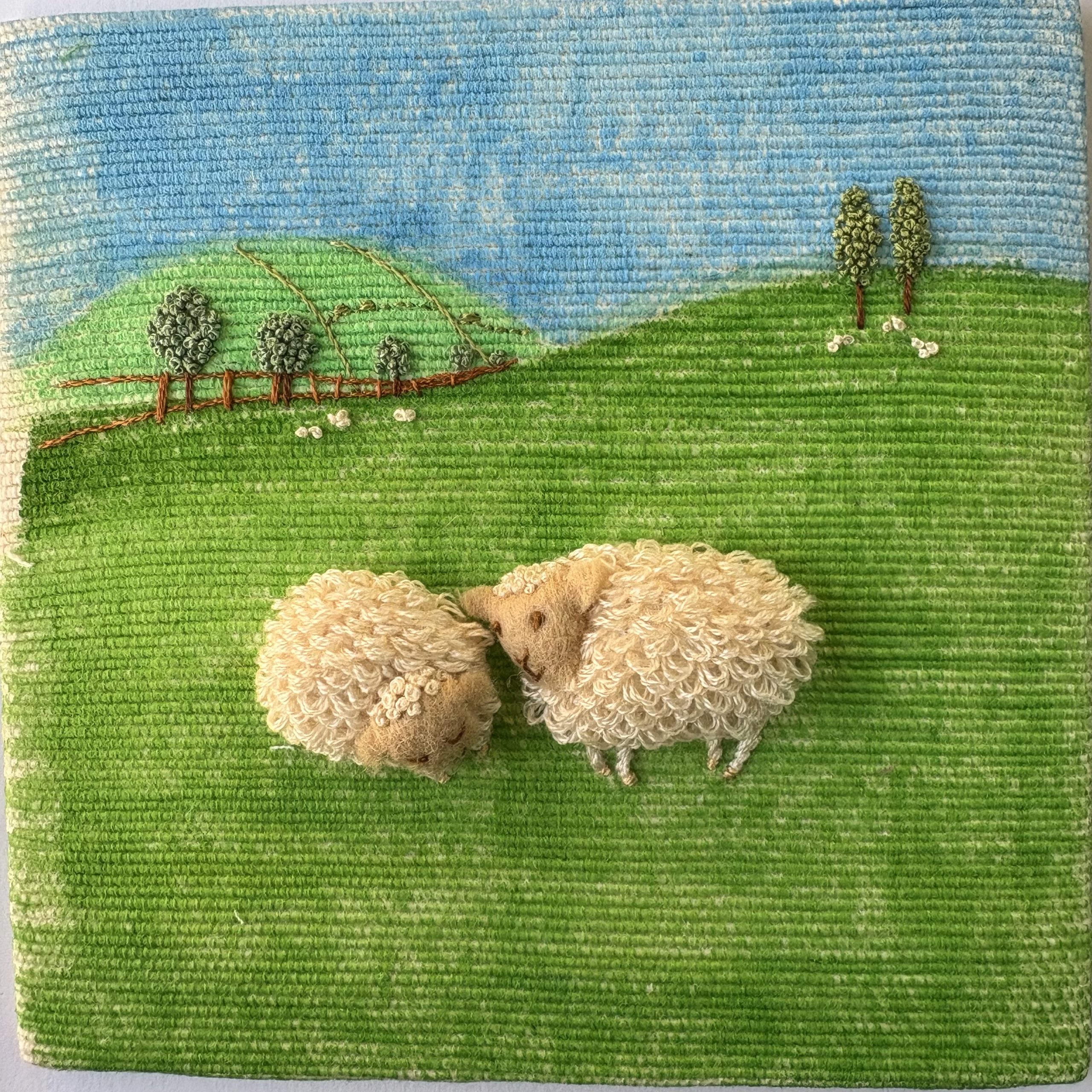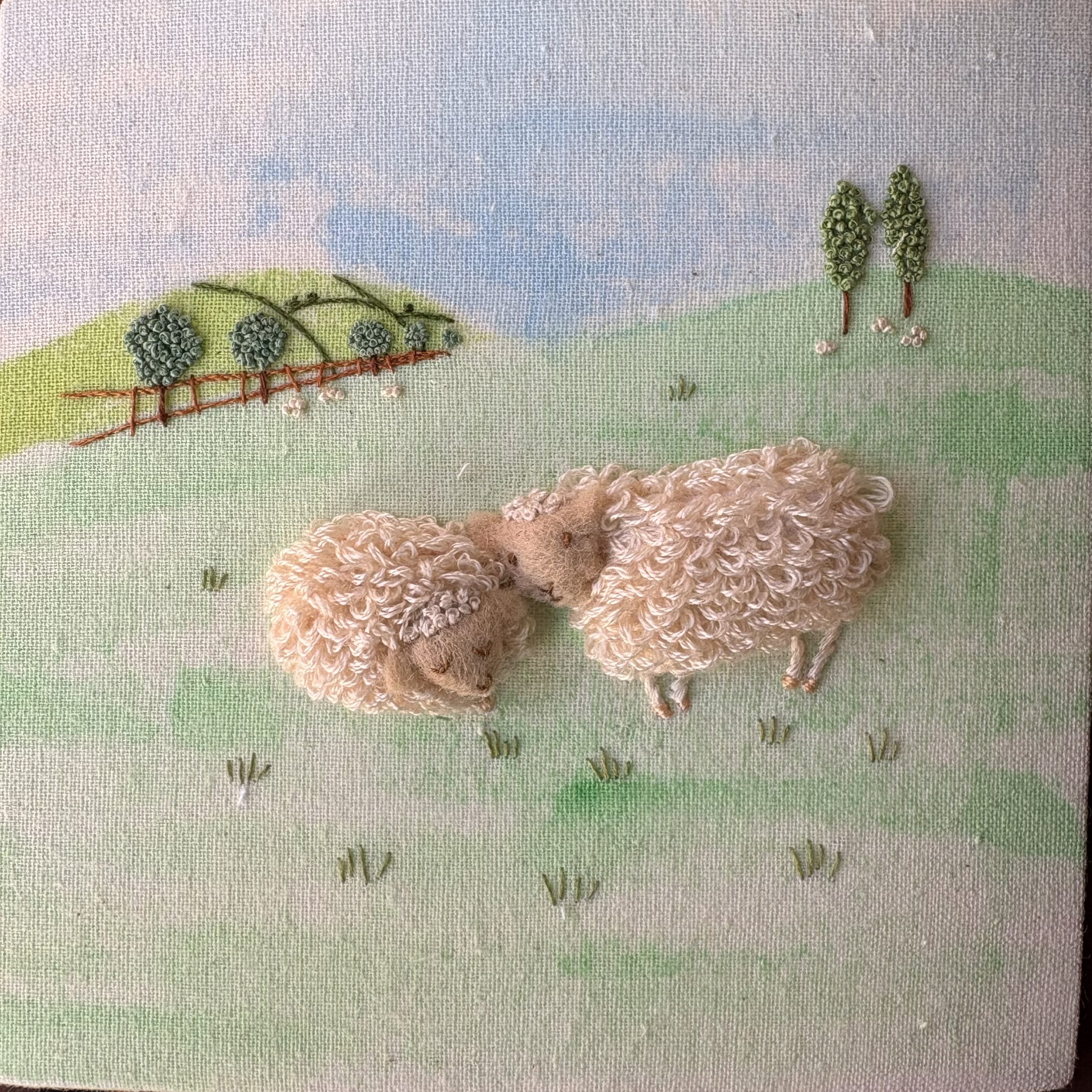 17世紀にイギリスで広まった伝統的な立体刺繍スタンプワーク。繊細でリアル感のある他にはない魅力の刺繍を学ぶクラス。2回で「ひつじ」を制作します。