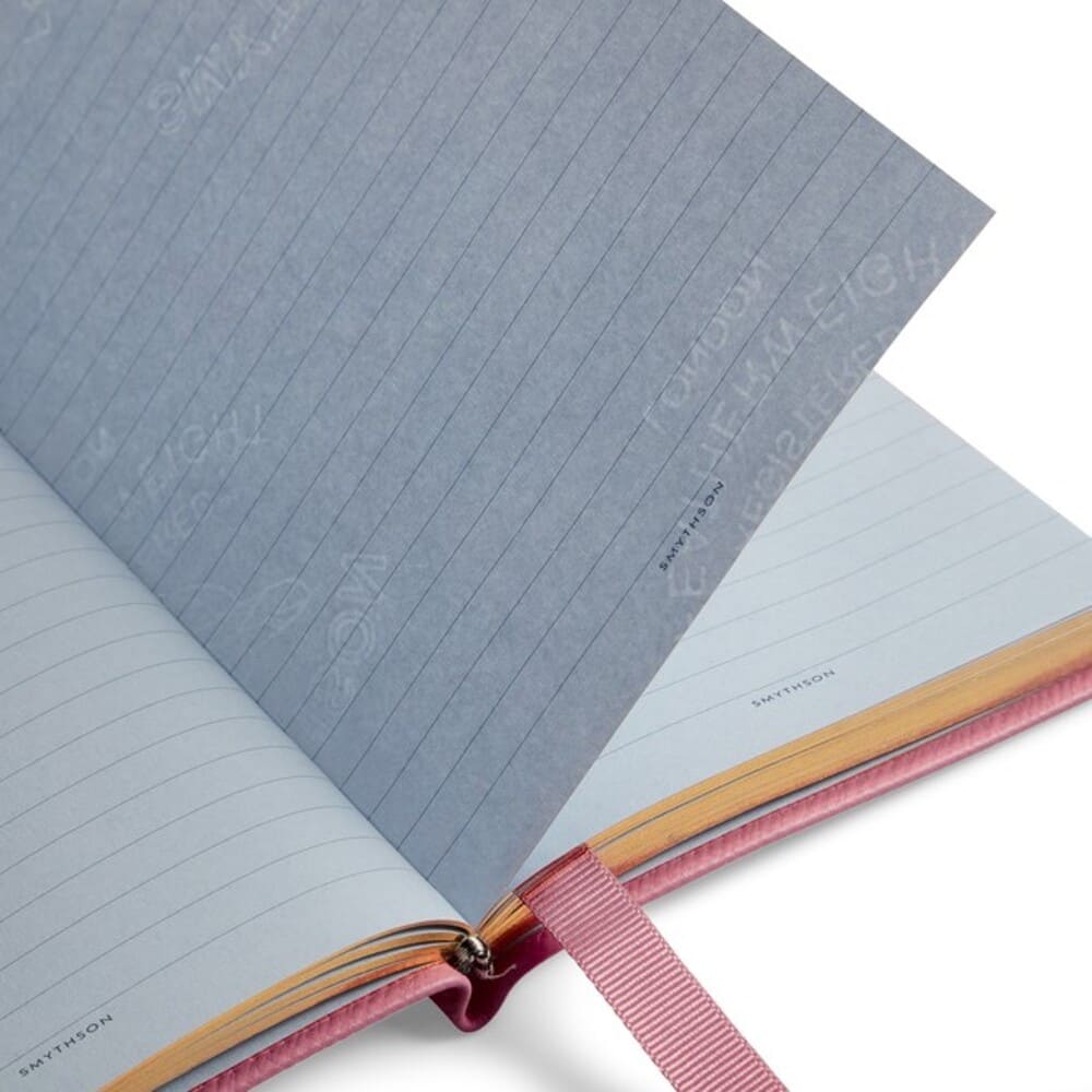 普通紙の半分ほどの重さと厚みながら、インクが滲まず万年筆の裏抜けもなく美しく文字を綴ることが可能なペールブルーのフェザーウェイトペーパーを、上質なラムスキンのカバーで製本したギフトにもぴったりなノートブックです。