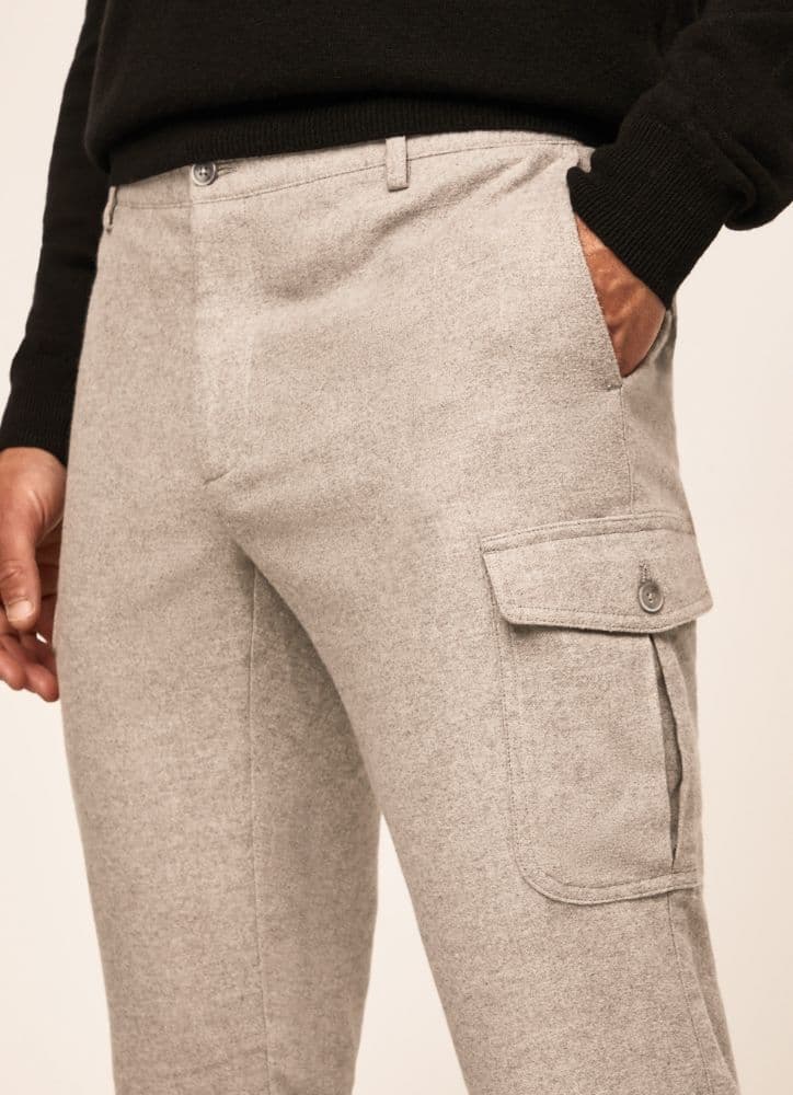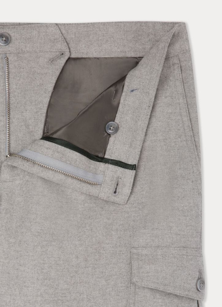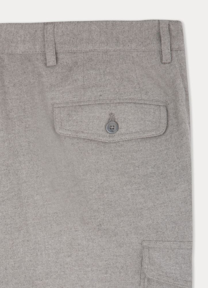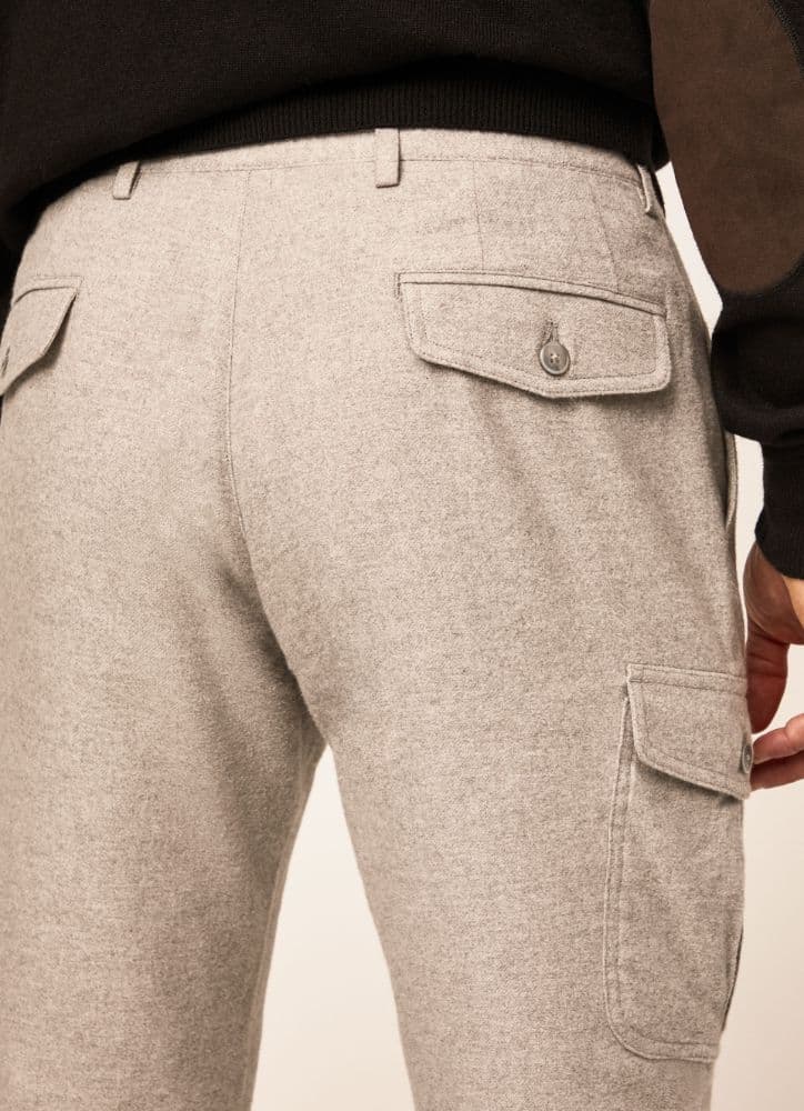 起毛したコットンの上質な素材を贅沢に使用した、ソフトな履き心地の冬用カーゴトラウザーです。サイドパッチポケットとフラップ付きのバックポケットが特徴です。