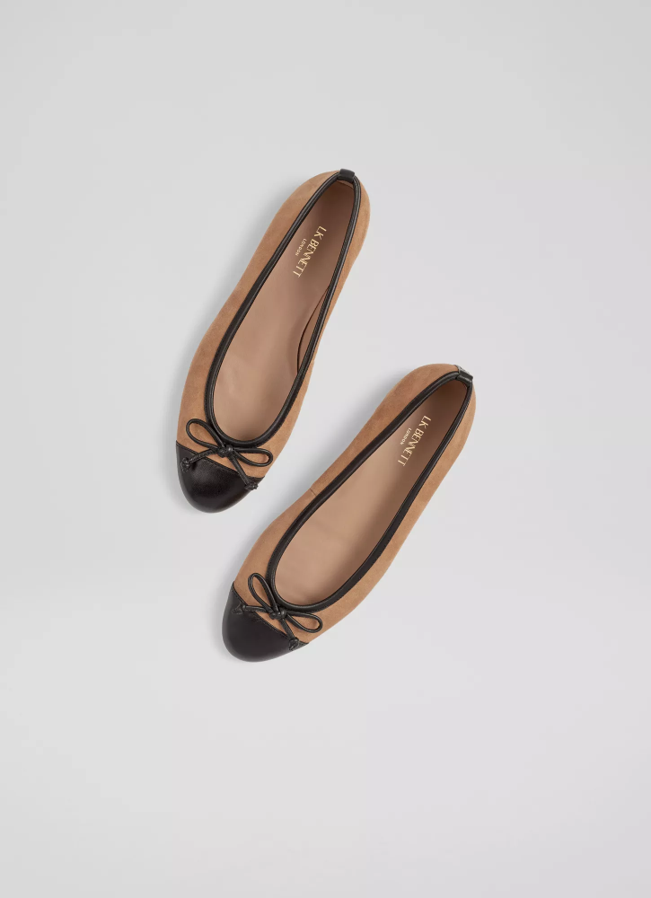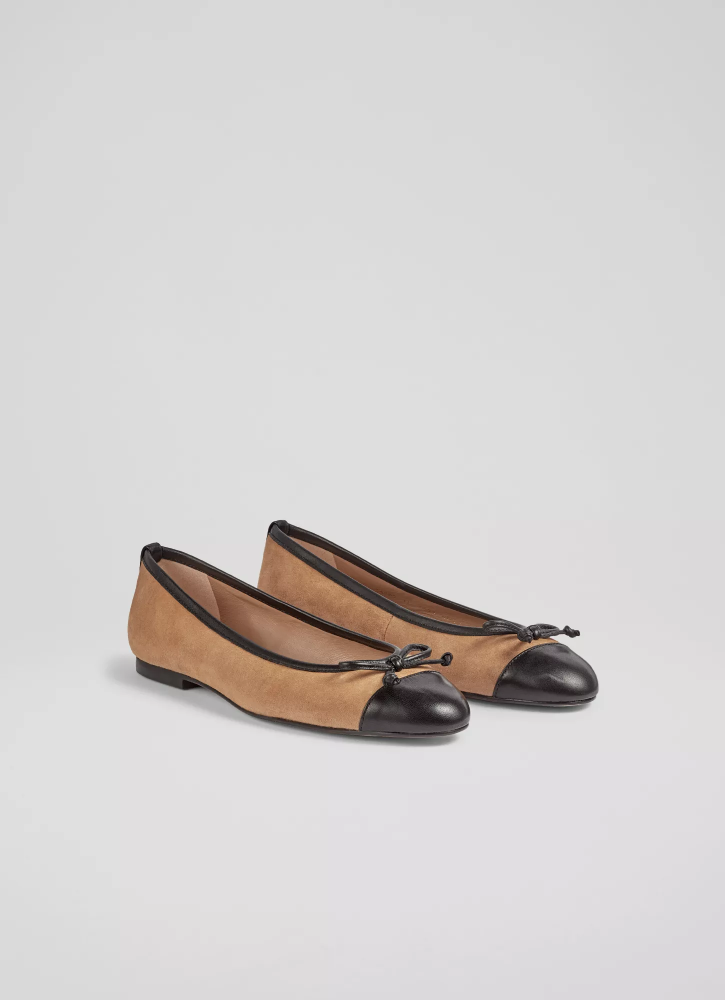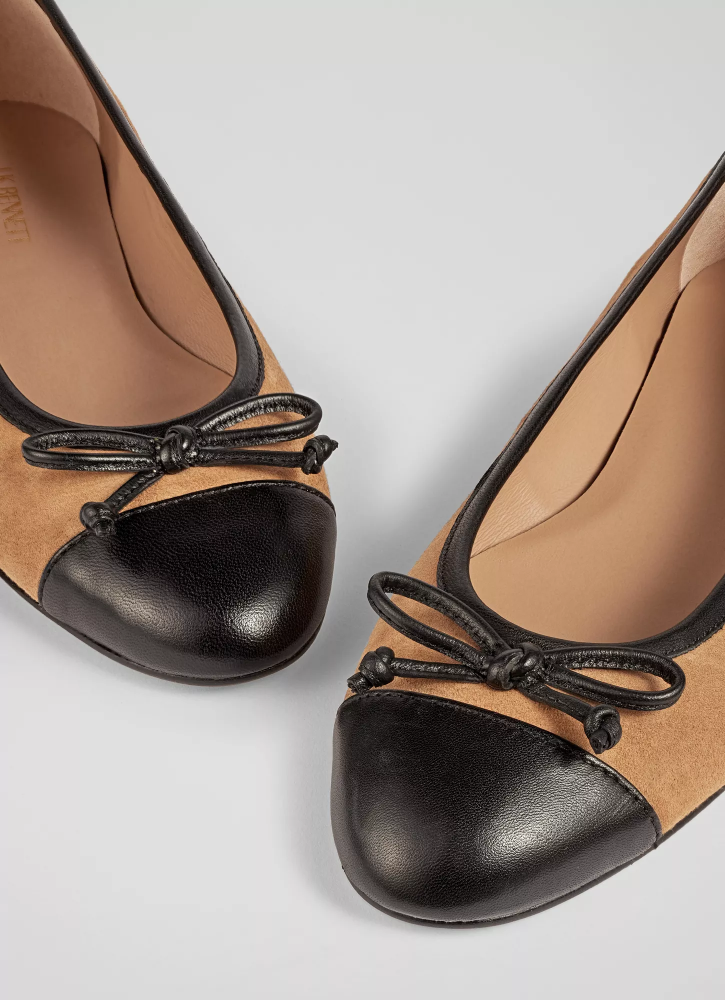 レザートゥキャップバレリーナパンプス カラサンド / スエード×ブラック
