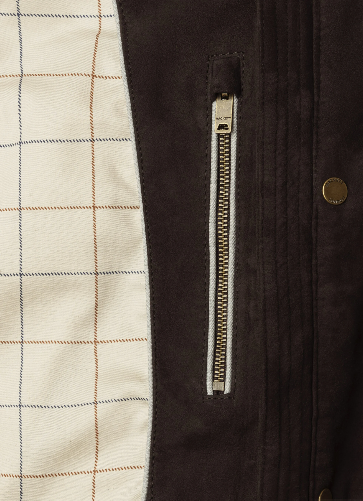ダイヤモンドキルティングステッチとタッターソールチェックの内側が施された、しなやかなゴートスキンスエード製です。