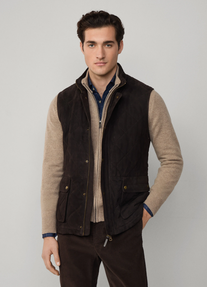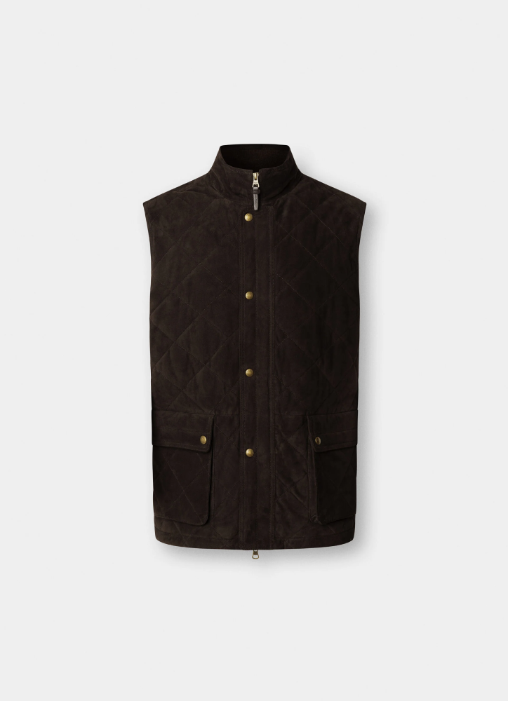 スエードダイヤモンドキルティングジレ / ダークブラウン