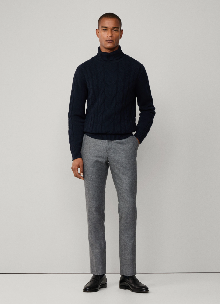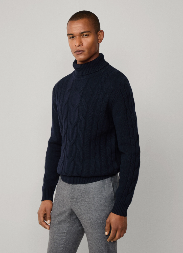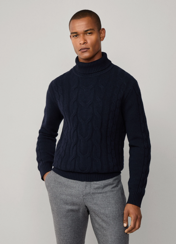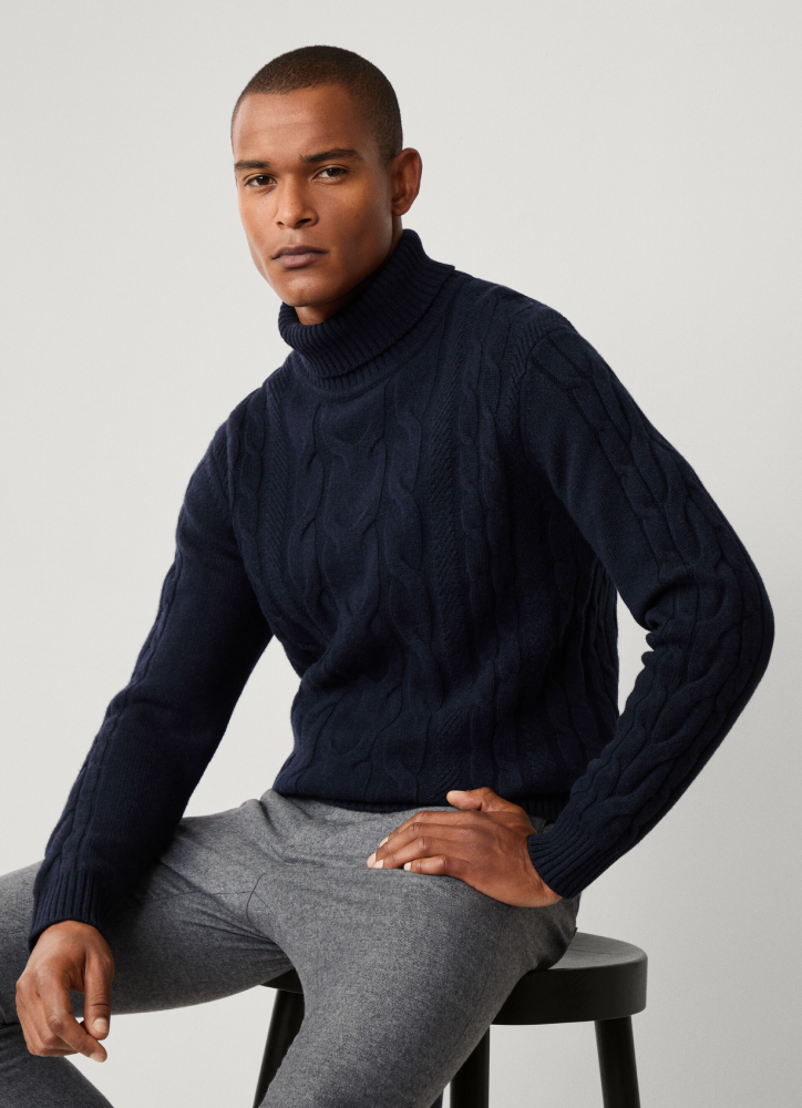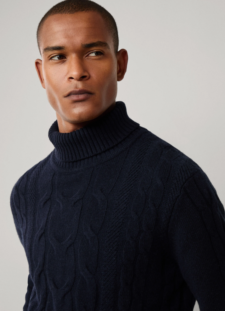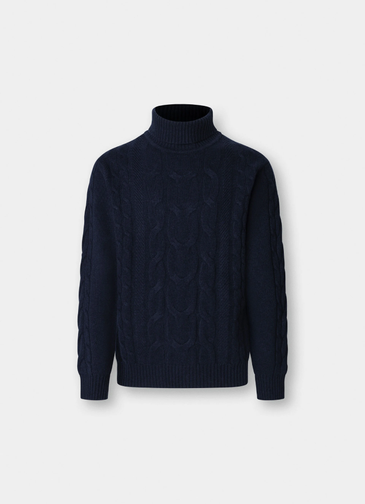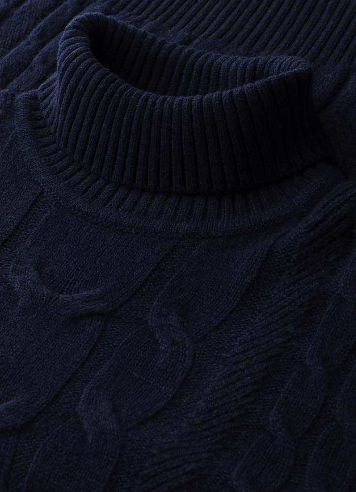 ウールカシミアケーブルロールネックジャンパー / ミッドナイトブルー