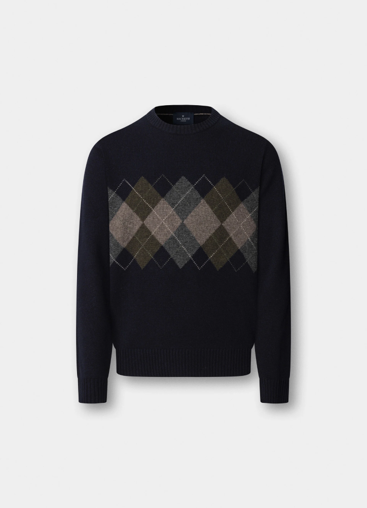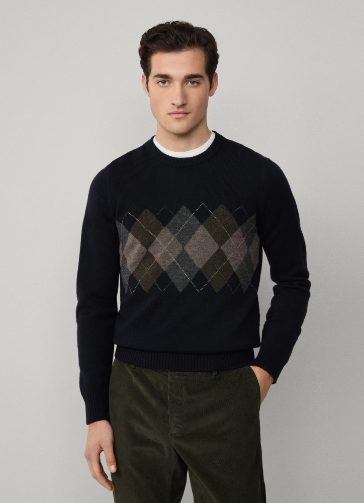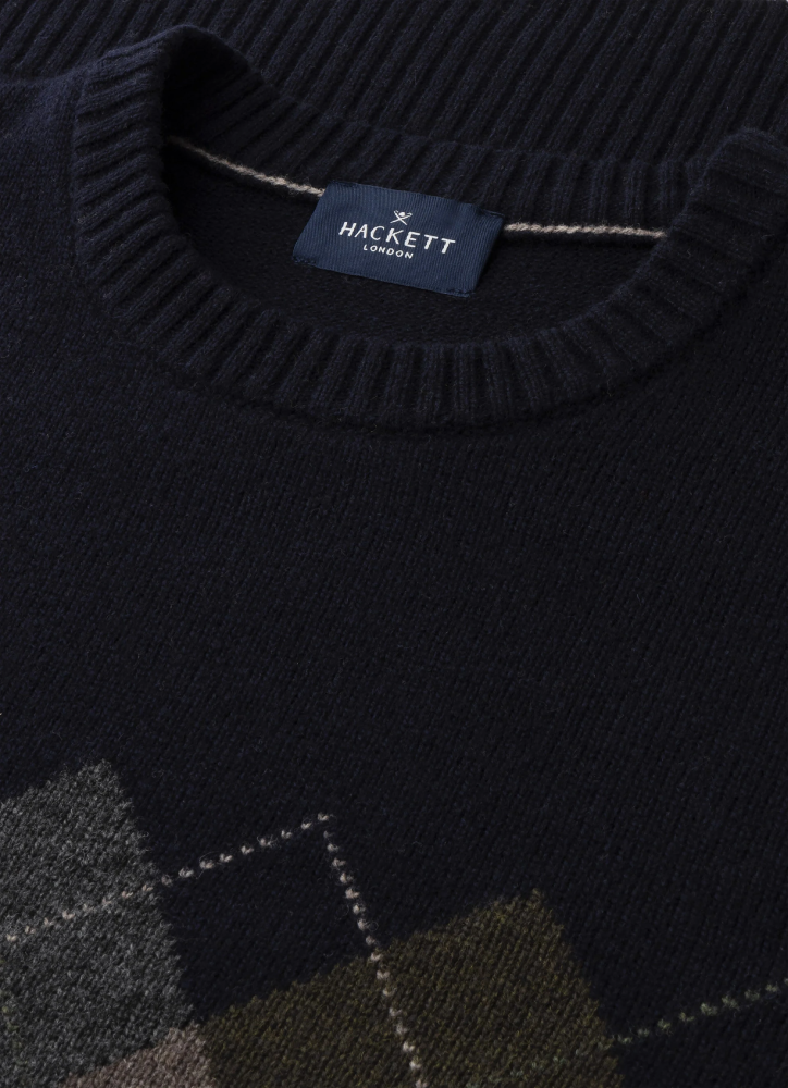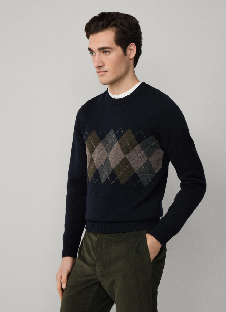 メリノウール アーガイルクルーネックジャンパー / ネイビー