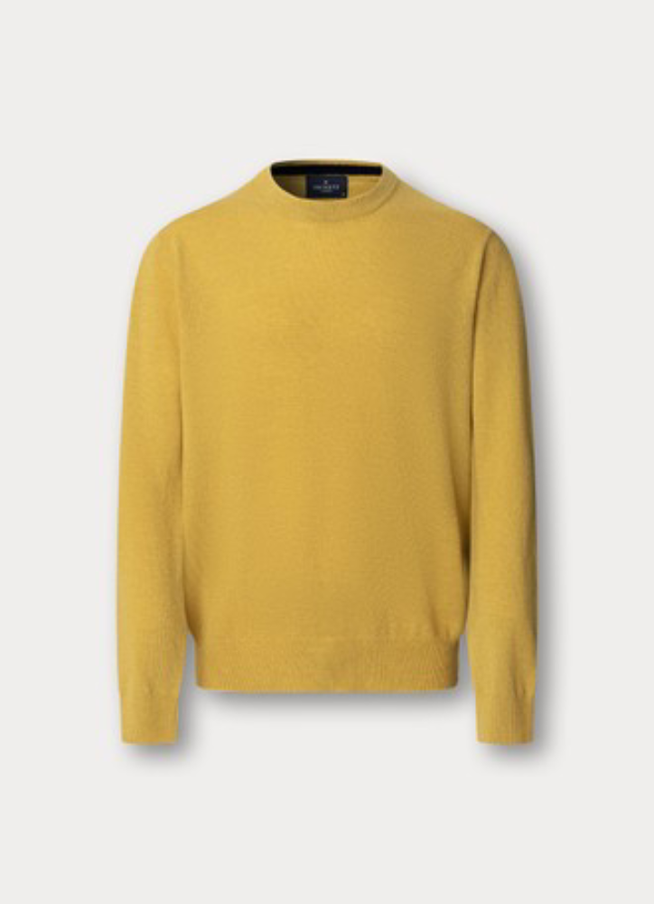 メリノウール混紡クルーネックジャンパー / バーントイエロー