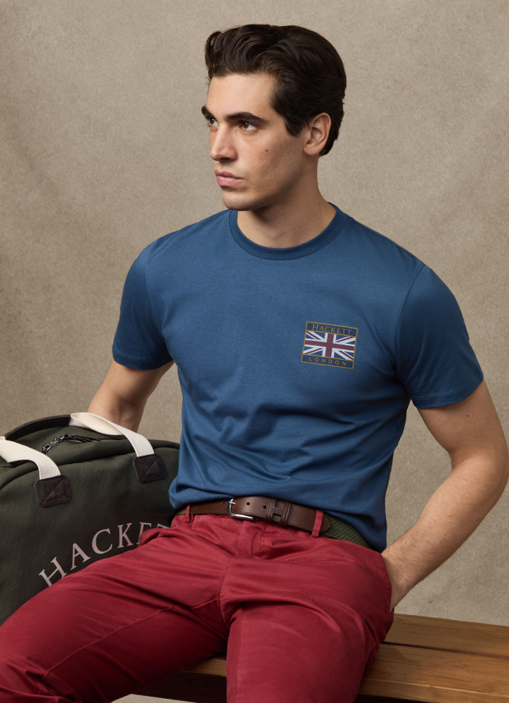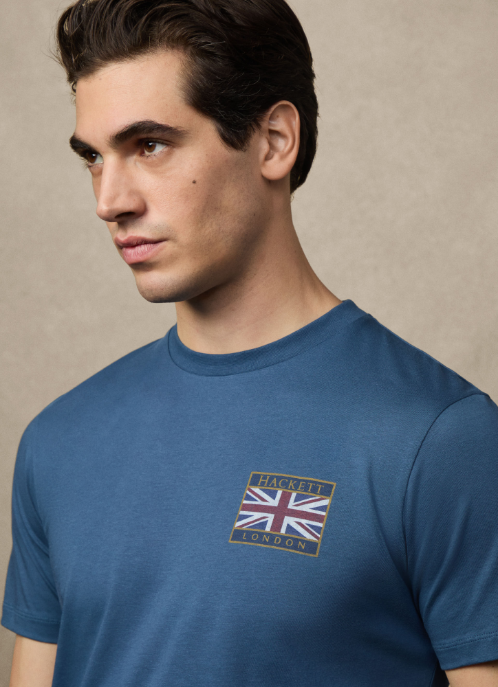 胸にHウォータープリントのユニオンジャックグラフィック。